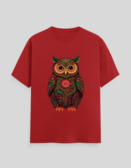 ₹999.00 (incl. all taxes)Owl Tapestry Tee – Red Edition