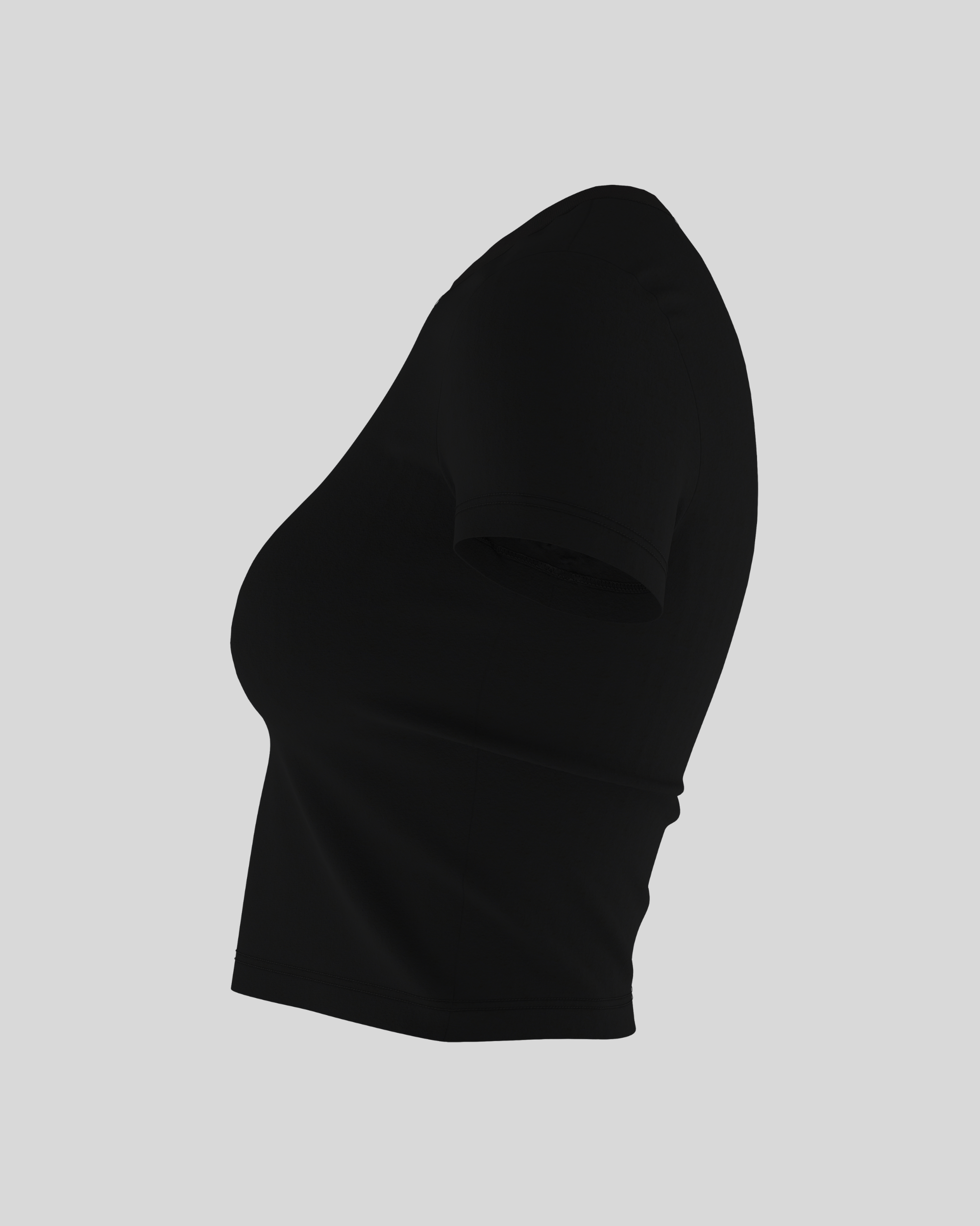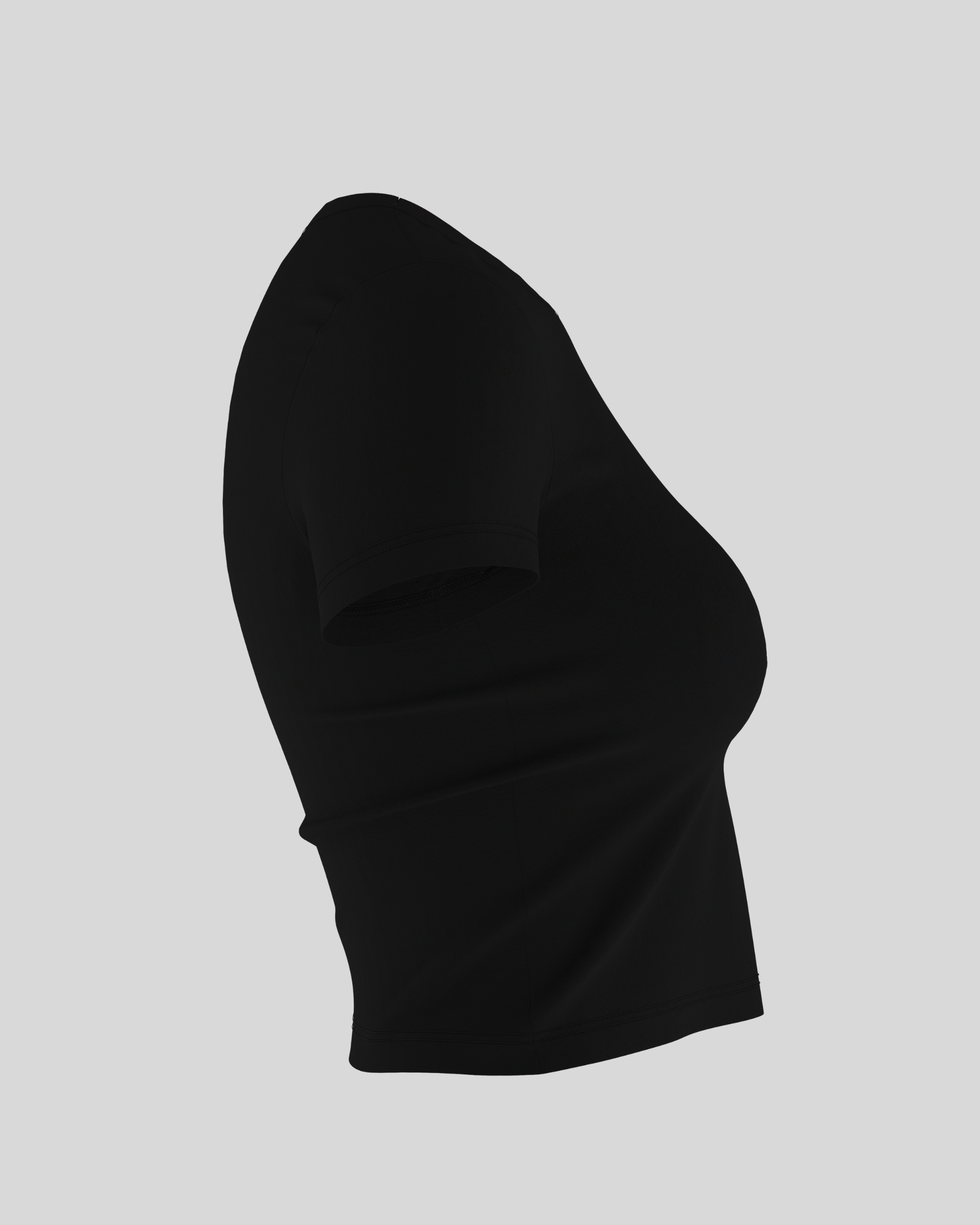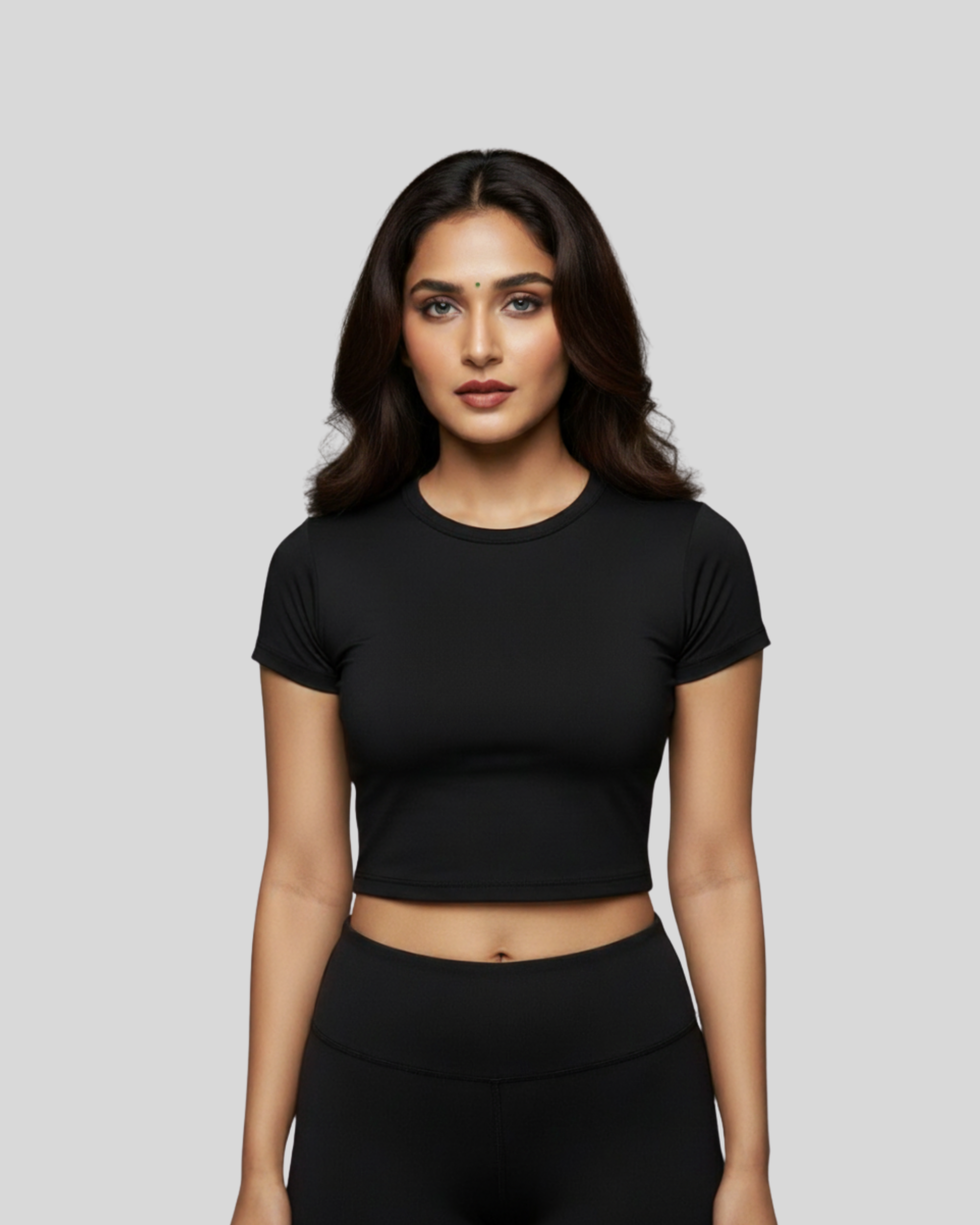 This cropped baby tee blends a soft cotton-spandex stretch with a snug, flattering fit. Designed for versatility, it works as a solo statement piece or layered, perfect for street, casual, or chic pairings.
